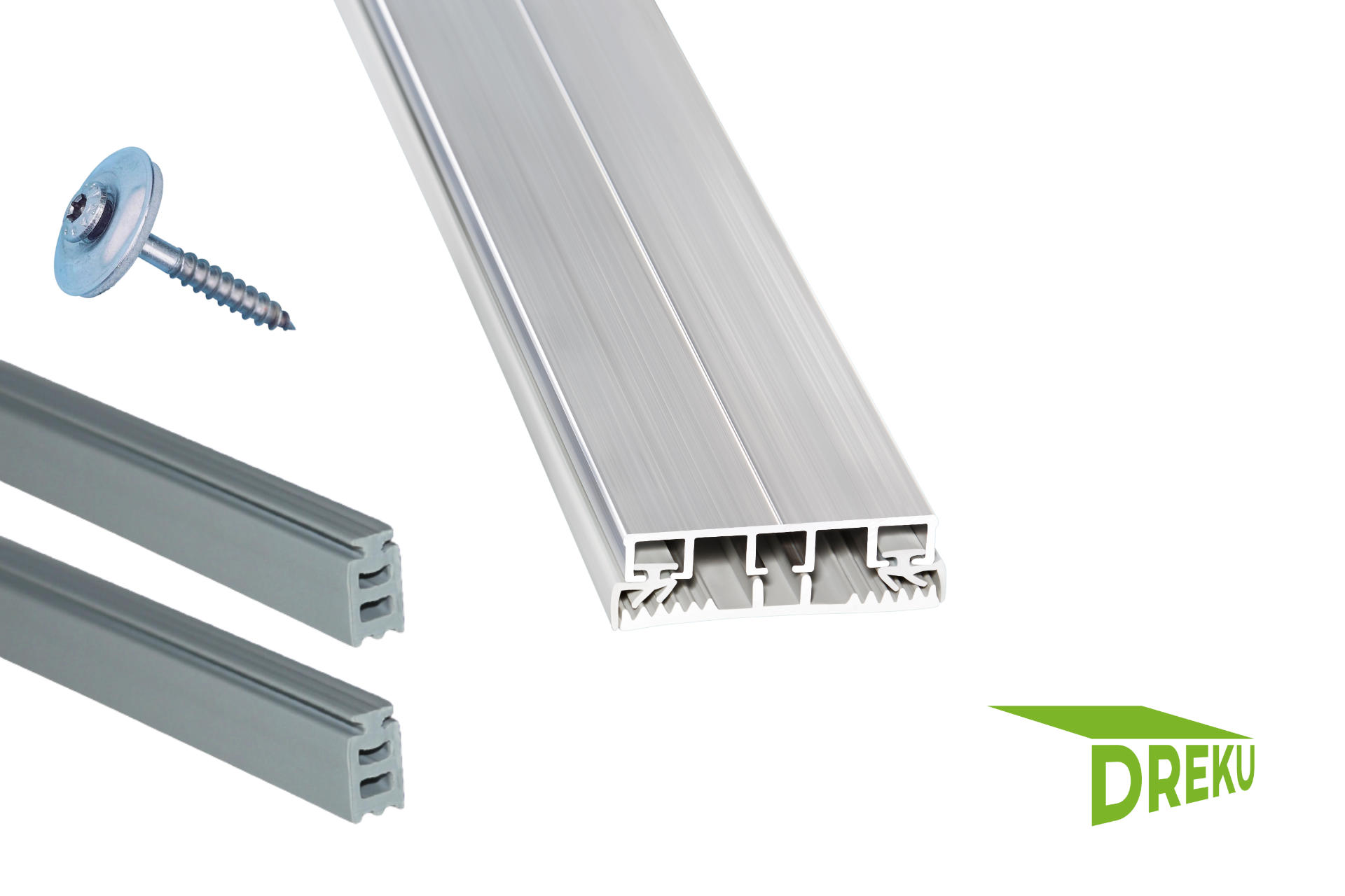 – Aluminium Verbinderprofile mit Riefenauflagegummi und Schrauben