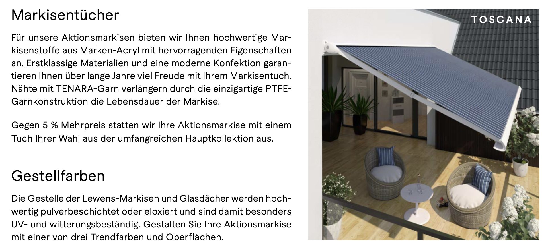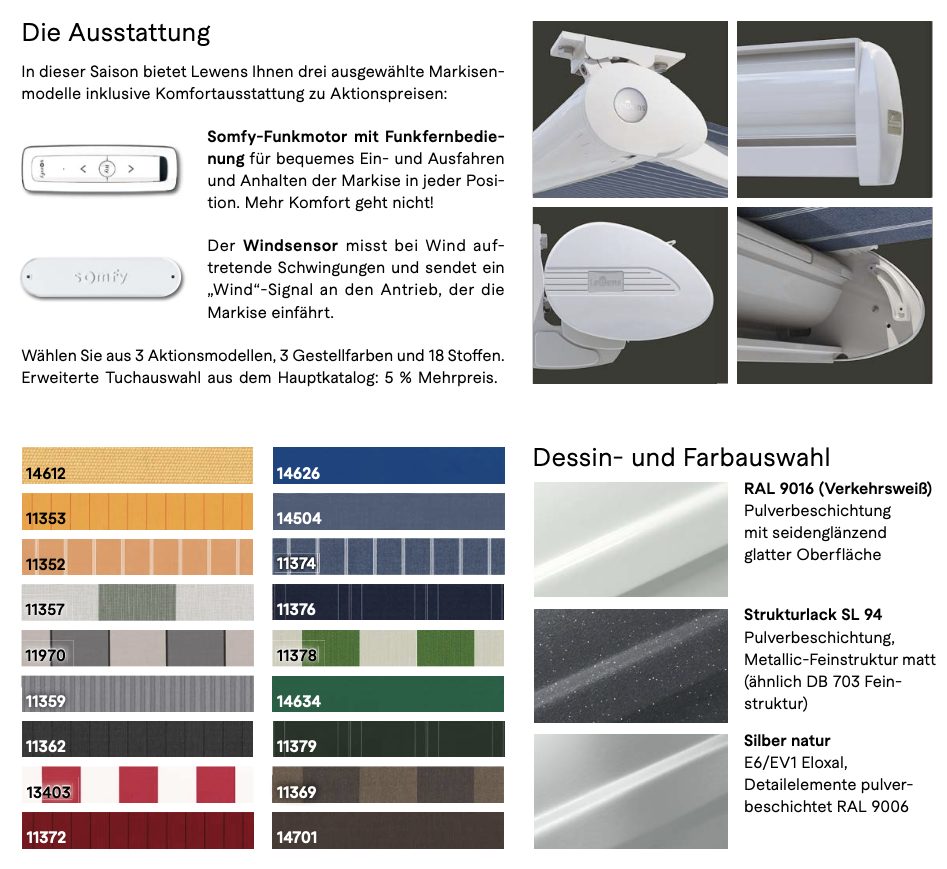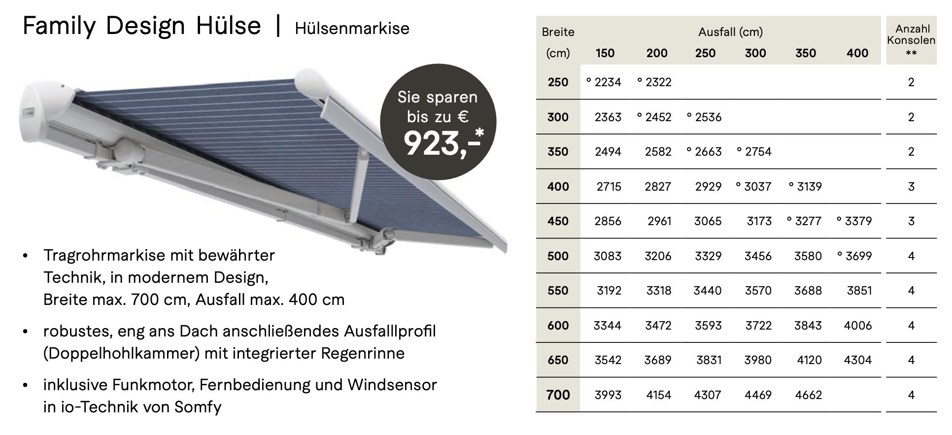 °  Montage des Windsensors bei diesen Maßen nicht werkseitig im Auslaufprofil möglich; der Sensor muss unterhalb des Profils sichtbar angebracht werden.